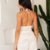 Desenvolvida em tecido de renda tropical é leve, suave e com caimento perfeito. No busto possuiu forro, garantindo zero transparência. Com amarrações em cordão de sarja.
