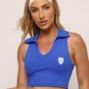 O Cropped Club traz um design moderno que une elegância e esportividade. Seu decote em V alonga e valoriza o colo, enquanto o detalhe em gola polo adiciona o charme do estilo Sporting Club.