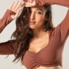 O cropped Light é modelo manga longa, perfeito para qualquer momento!!! Modelagem ajustada ao corpo valoriza a silhueta. Possui elástico interno para maior segurança na hora do treino, além de ser produzido com tecido duplo na frente, para não marcar. Possui abertura para dedo e seu decote tem detalhe franzido, valorizando ainda mais o busto.