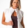 Colete Sherpa é o nosso queridinho da estação! Moderno, estiloso e quentinho. Ele possuiu gola alta e bolsos laterais. Fechamento em zíper tratorado com puxador personalizado ROSA IMPERIAL, com detalhe em bordado abaixo do bolso.