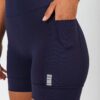 Detalhe destaque no barrado com leve compressão que deixa o comprimento no lugar durante o movimento.