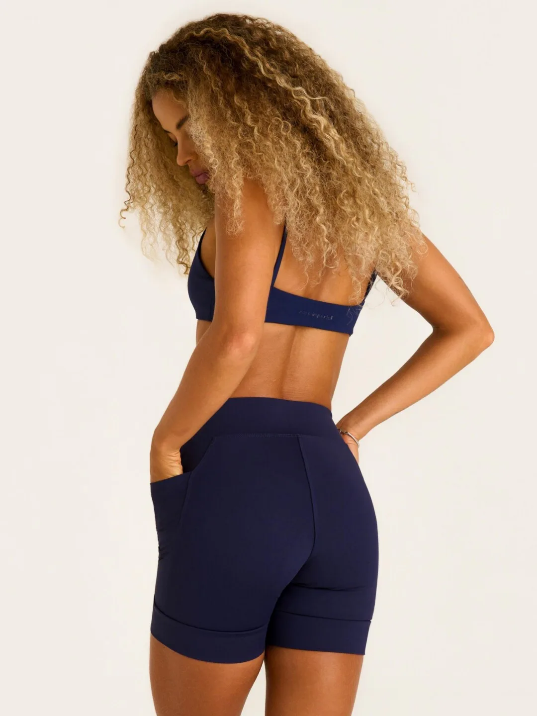 Detalhe destaque no barrado com leve compressão que deixa o comprimento no lugar durante o movimento.