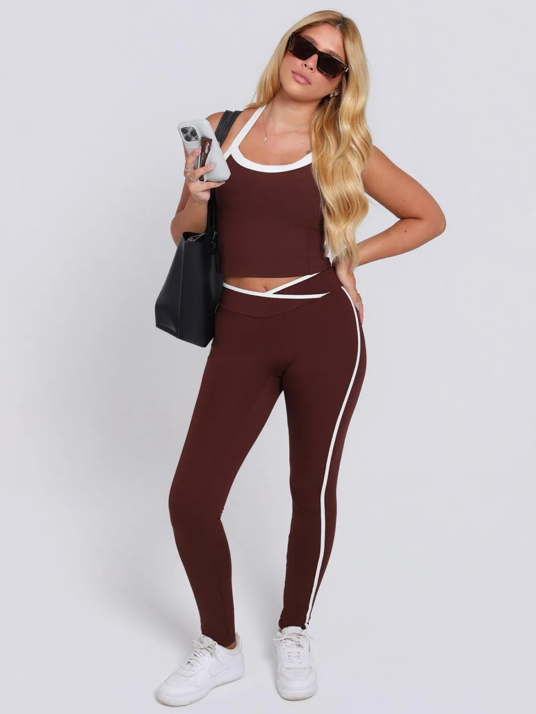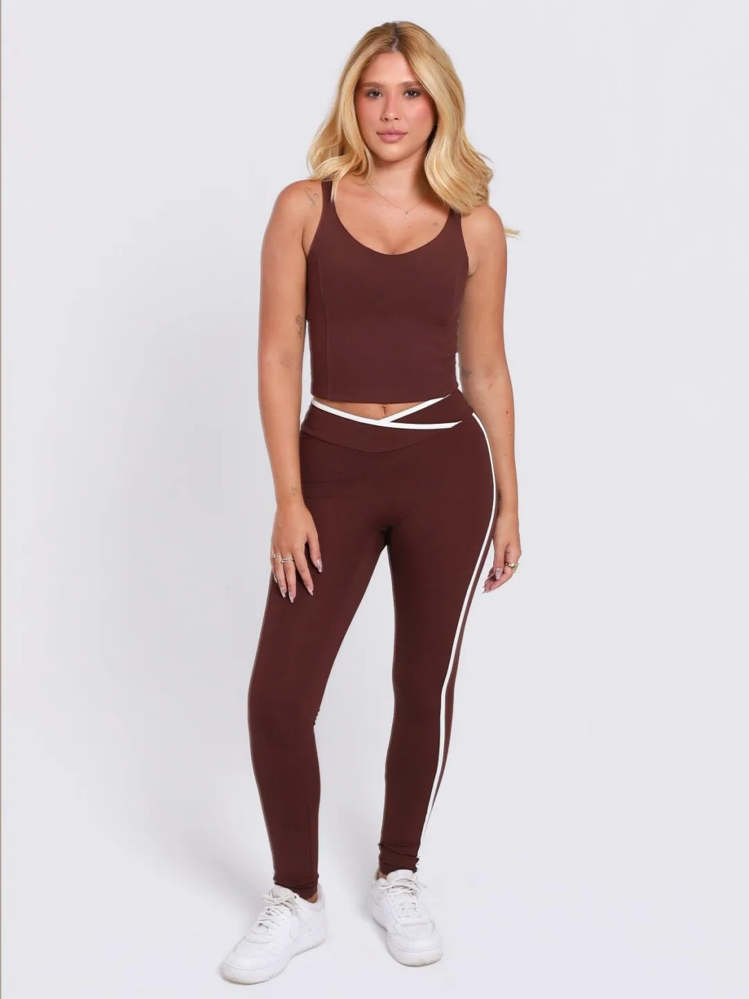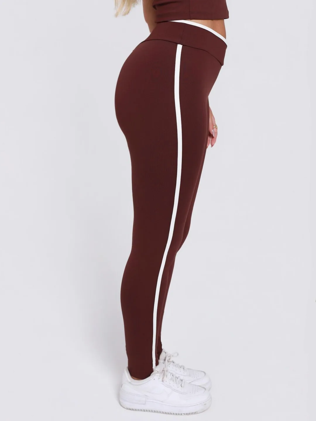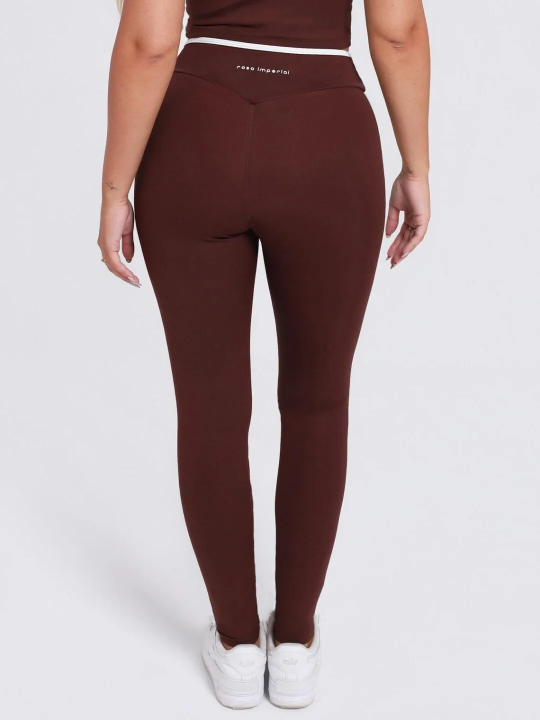 A legging Contrast é um modelo sem costura frontal.