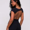 Nas costas possui um decote redondo e acentuado com elástico embutido.