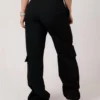 Modelagem reta garante liberdade nos passos, enquanto os bolsos cargo e o cós com elástico adicionam praticidade ao visual.