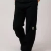 Modelagem reta garante liberdade nos passos, enquanto os bolsos cargo e o cós com elástico adicionam praticidade ao visual.