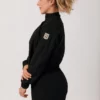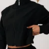 A jaqueta possui gola alta, mangas longas e fechamento por zíper frontal, proporcionando praticidade no uso diário. Os bolsos frontais são perfeitos para guardar pequenos objetos com segurança, enquanto a barra e os punhos em elástico garantem um ajuste perfeito ao corpo.