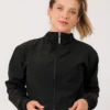 A jaqueta possui gola alta, mangas longas e fechamento por zíper frontal, proporcionando praticidade no uso diário. Os bolsos frontais são perfeitos para guardar pequenos objetos com segurança, enquanto a barra e os punhos em elástico garantem um ajuste perfeito ao corpo.