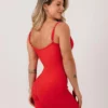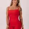 Confeccionado com um tecido canelado é super macio, flexível e confortável, possui costuras rebatidas na parte frontal que ajustam e modelam o corpo, possui um decote quadrado com elástico interno e forro na parte dos seios. Na parte das costas ele possuiu recortes com costuras rebatidas, dando um detalhe perfeito á peça.