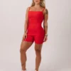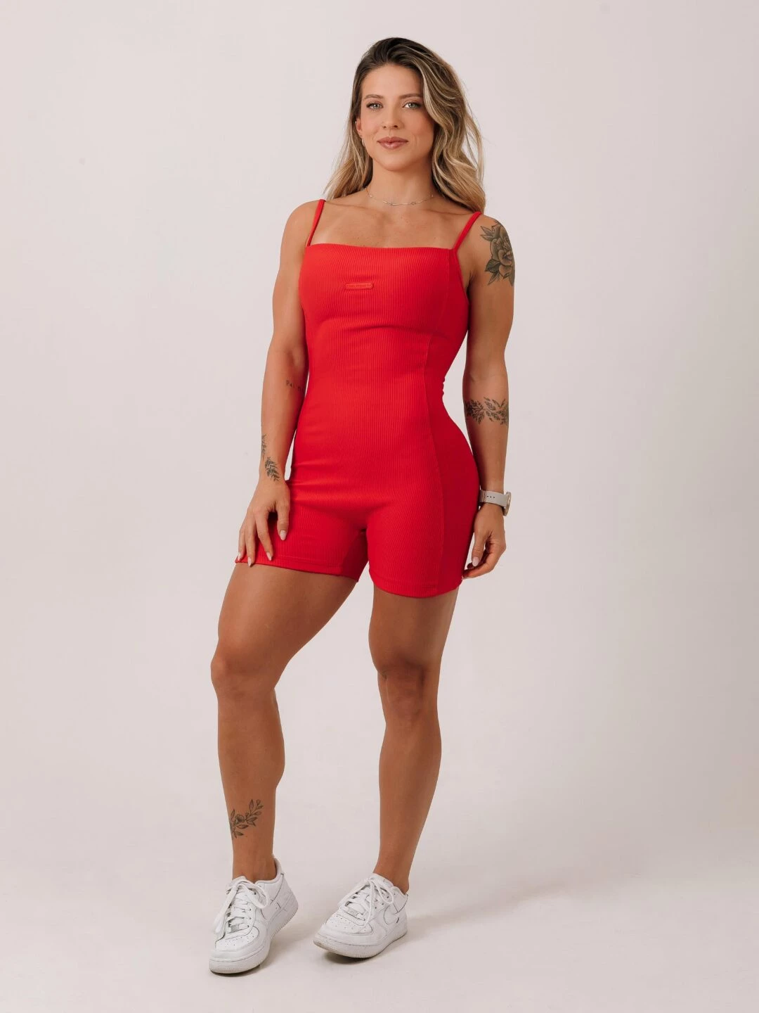 O Macaquinho Honey Ribbed é um modelo de alcinha com regulagem e com as costas mais fechadas.