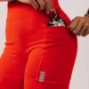 Detalhe destaque no barrado com leve compressão que deixa o comprimento no lugar durante o movimento.