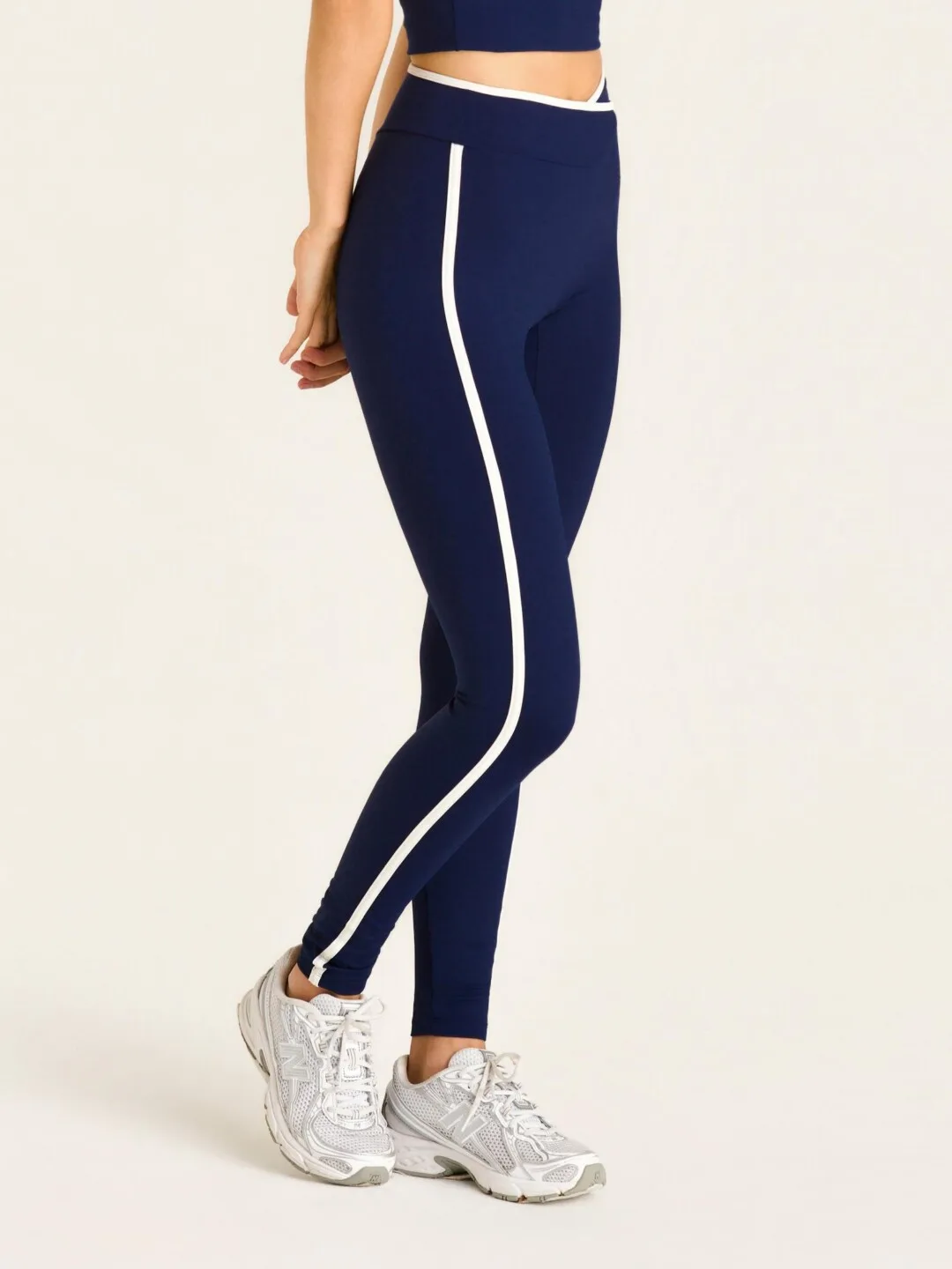 A legging Contrast é um modelo sem costura frontal.