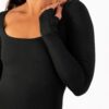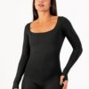 O Macaquinho Match manga longa é o modelo perfeito!!! Confeccionado com um tecido super macio, flexível e confortável, não possui costuras na parte frontal da peça. Na frente possui um decote quadrado com elástico interno e forro na parte dos seios. Nas costas possui um decote redondo e acentuado com elástico rebatido,no punho possui abertura para dedo além de possuir uma tira com regulagem para mais segurança na hora do treino.