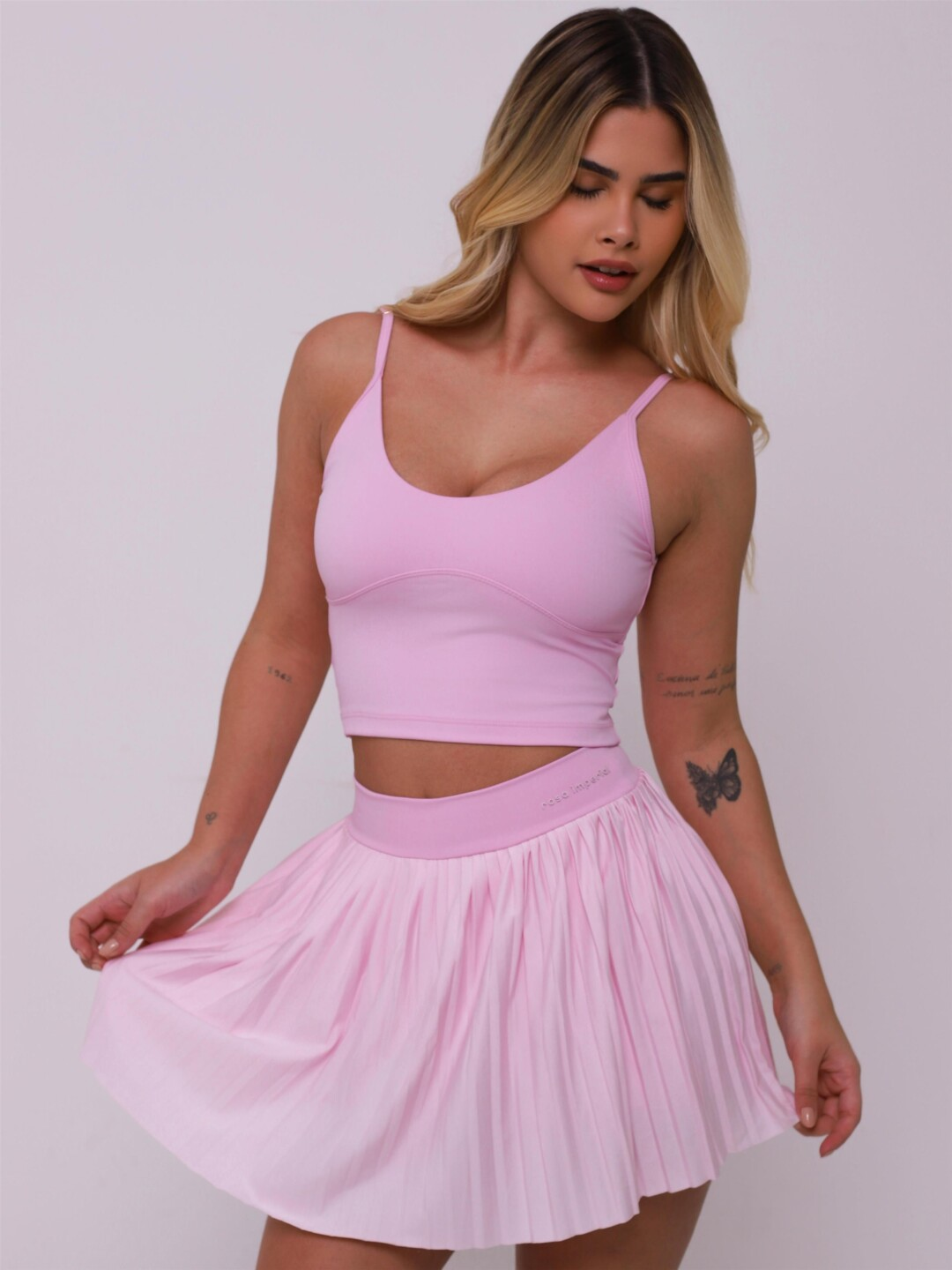 Tecido plissado fluido adiciona movimento, elegância e um toque de glamour — perfeita para esportes de clube e ocasiões casuais.